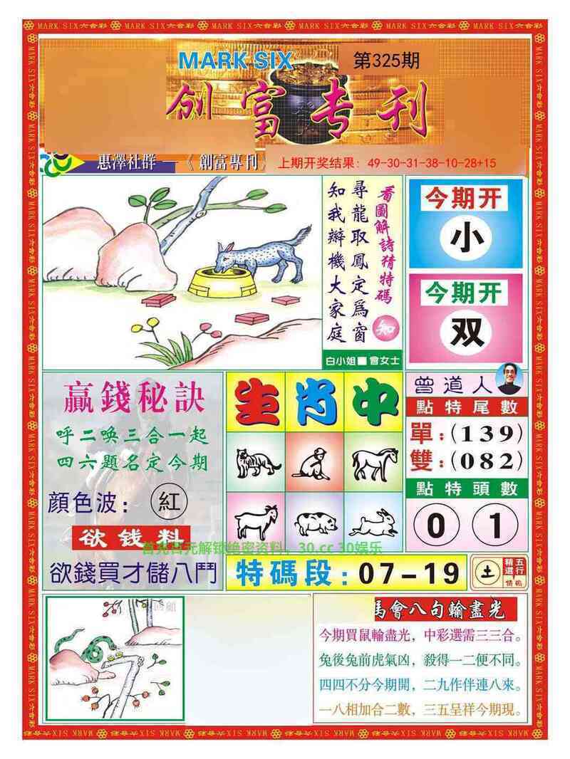 323期:正版创富网:今期贴土个吹牛,翻天覆地害百姓
